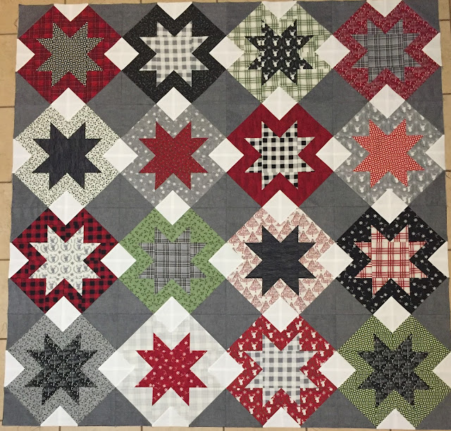 That's exactly what I did before making the quilt pictured above. I made that quilt top a couple of years ago using the North Star pattern by Emily Dennis of Quilty Love. At the time, the pattern cover featured a version made with Bonnie and Camille fabrics and dark gray accent diamonds connecting the blocks. I bought a kit to make the pattern in Hearthside Holiday by Deb Strain for Moda Fabrics and similar to the pattern cover at the time, the kit provided white for the background and black crossweave for the accent diamonds.